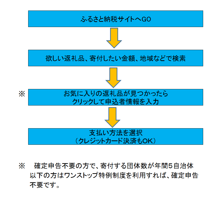 ふるさと納税の方法についてフローチャート方式でご説明します。